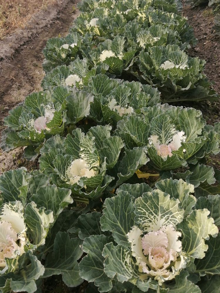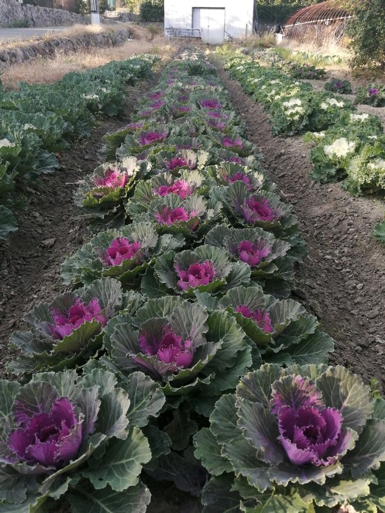 近所の畑で葉牡丹を栽培していました。もう出荷されていると思います。
