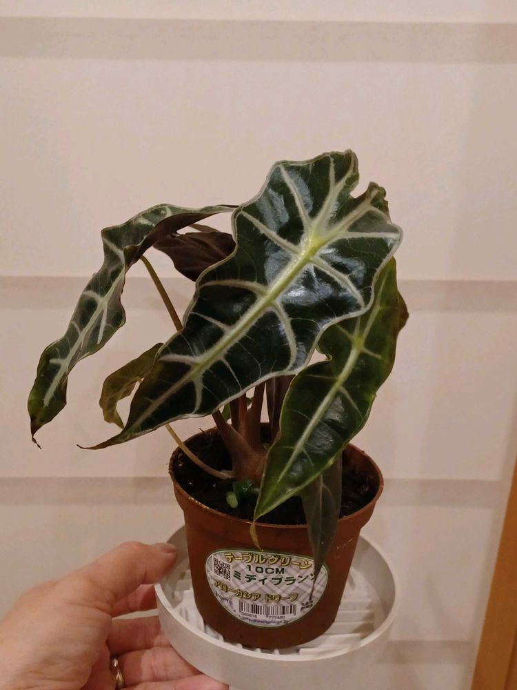 2025.8月に某サイトで購入した【アロカシア チャイ】の 突然変異?なんだろう 購入時、元々有った葉を(1枚目の葉)として、 下から新たな葉が出てきてる状態で到着しました(2枚目の葉) こちらに来て初めて出てきた葉に異変が。。 育て始めて出てきた初めての3枚目、4枚目 (途中から、斑1、斑2、、と続きます) どこまでこの謎の斑入葉が続くのか、 いや止まるのか……記録していきます