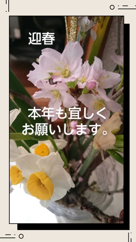 けいおうざくら🌸さんと水仙のお花が新春らしいですね☺️