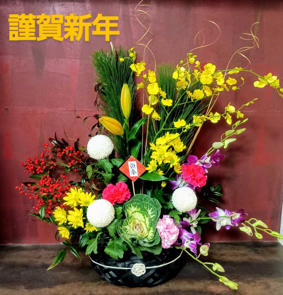毎年年末に職場の女性向けにお正月アレンジメントの講習会があり、そちらで教えていただきながら作りました。