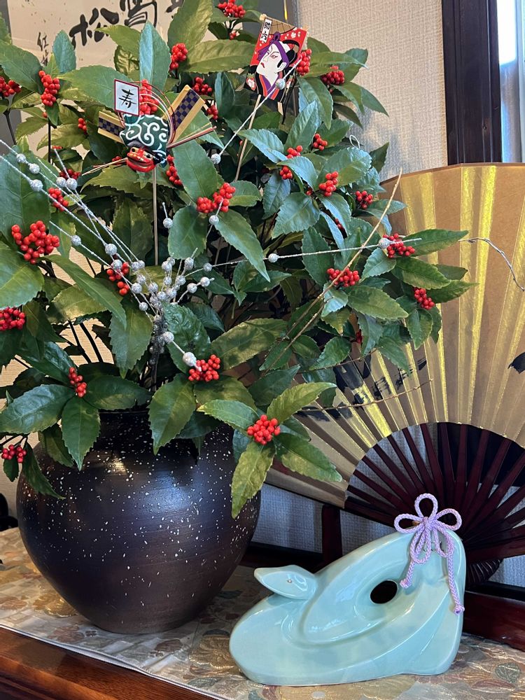また、お正月飾りの千両も綺麗で、お庭の育ち具合も素晴らしく、感心致しました。