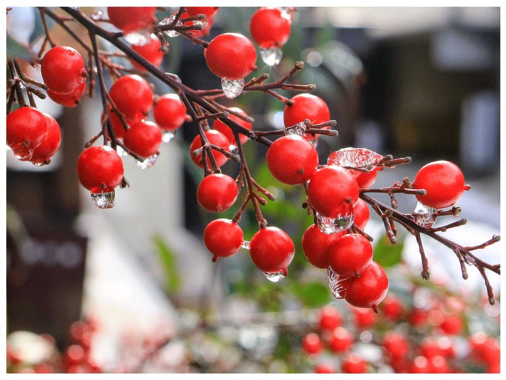 雪をバックに赤いナンテンの実が映えて美しいですね✧⁺⸜( ´꒵` )⸝⁺✧ ❄️🔴🌿✨