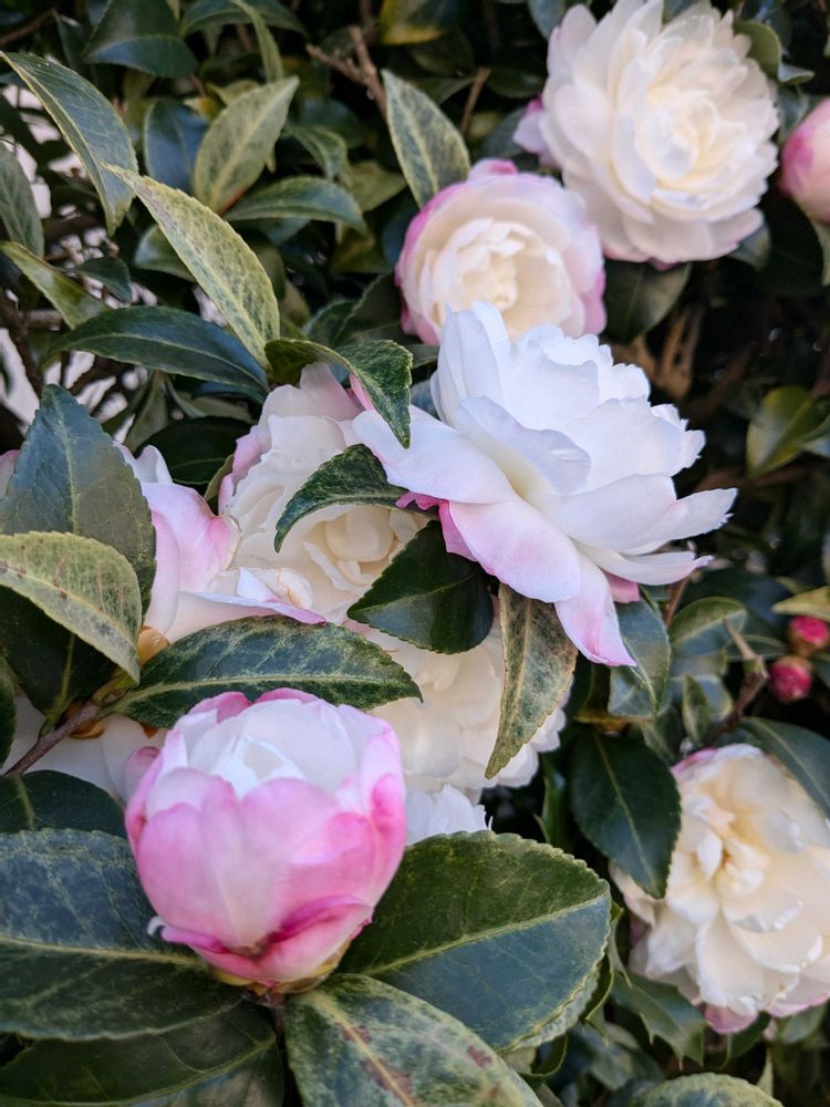 すごい人出の初詣✨かき分けかき分け歩いた後、目に飛び込んた綺麗な白い花ホッとした所で思わずパシャパシャ📷しました✨ときど淡いピンクが可愛さを増しました🤓👍👌🫶