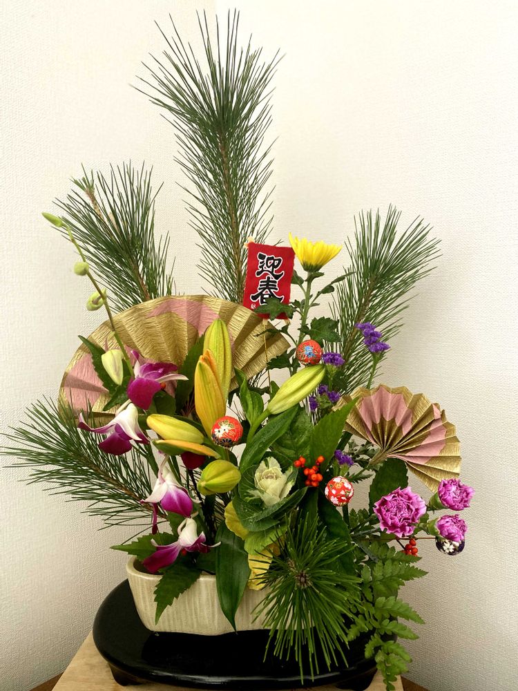 ①お正月花生けました