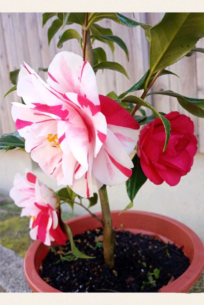 裏庭の真ん中はプチ菜園に占領されてるので、🌹🥀🌳花、木は鉢植えがほとんどなんですよ。昨年は長くてあづぅーい夏🥵。短い秋〜を感じる間も無く冬😱💧。
