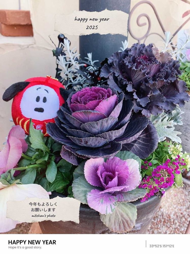 葉牡丹の寄せ植え,お正月,今年もよろしくお願いしますの投稿画像