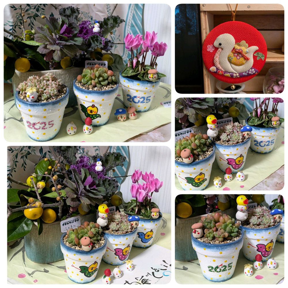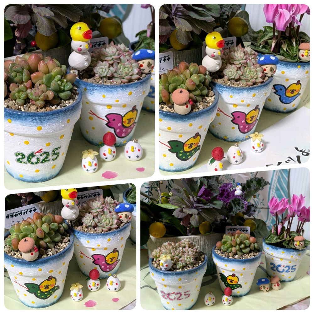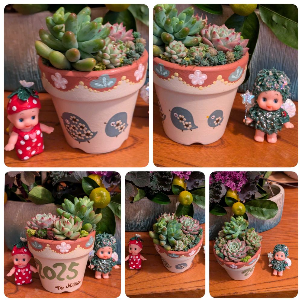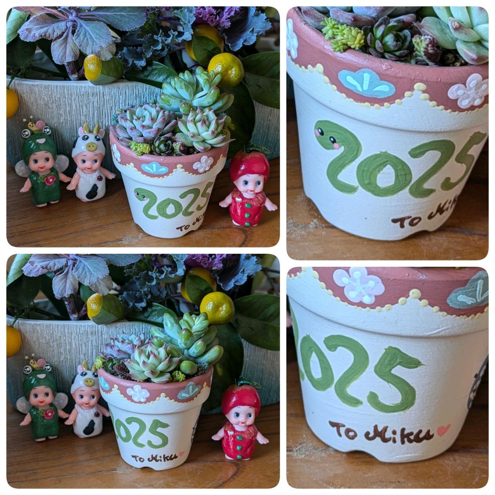 そして、こりんさんの巳年鉢、2025年が可愛い🐍蛇に〜そしておまけで描いてもらったTO Mikuの年女におめでとう鉢♥♥こりんさんに頂いたロッティ×乙女心も入れてーー