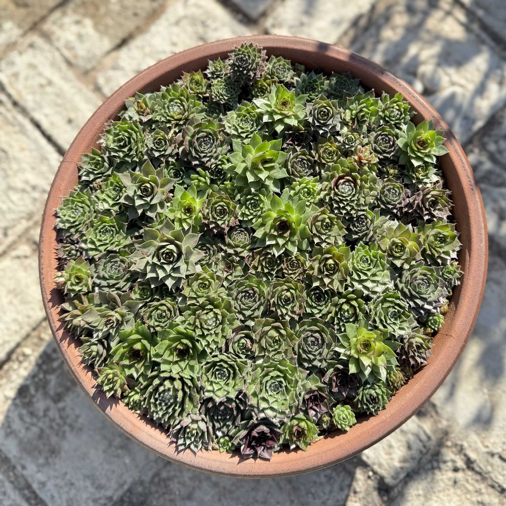 春に間引いたセンペル子株をびっちり寄せ植えした鉢