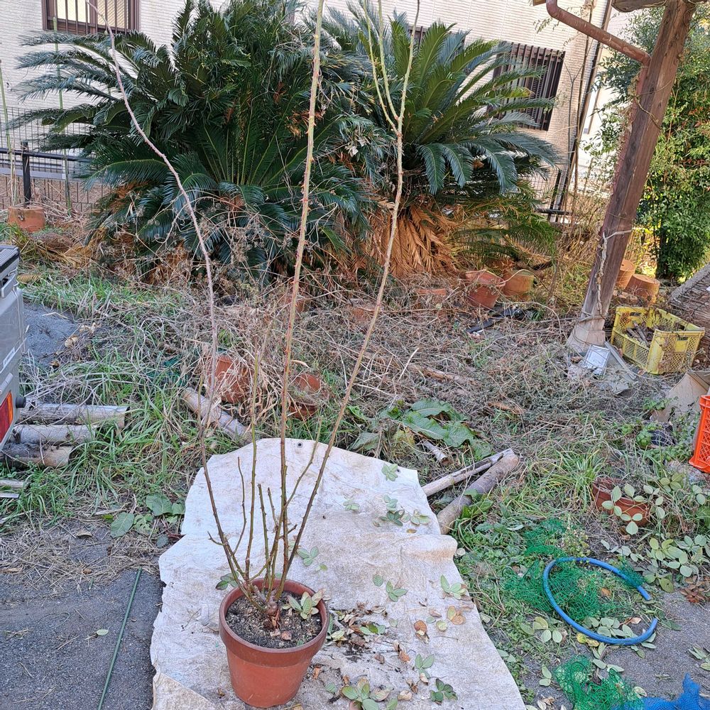 明けましておめでとうございます 去年の4/28に花を投稿した「ミスティリューズ」です 1シーズンでここまで大きくなってくれました さすが大型のシュラブといった感じがします 枝もしなやかで巻き付けやすくお利口さんてな品種ですね あとは液肥の具合を考慮しいしい春につなげたいとおもってます