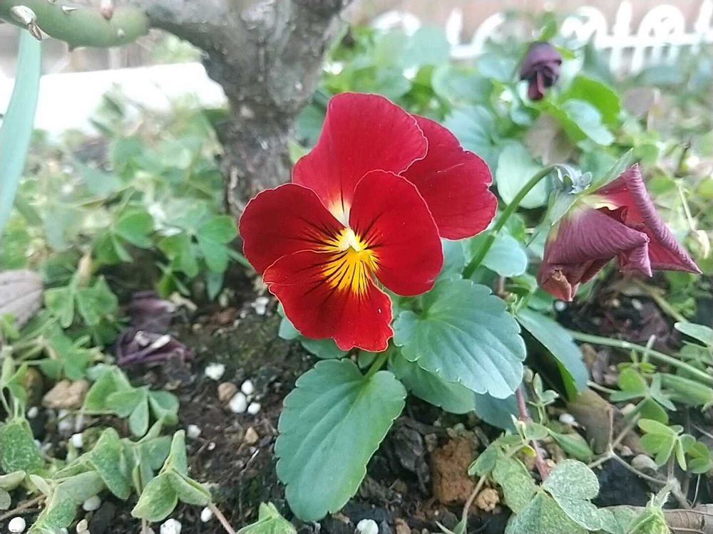 セントポーリアはたぶんココシャネル、それと冬越し中のインパチェンスと、こぼれ種から育ち夏越ししたビオラです❤️