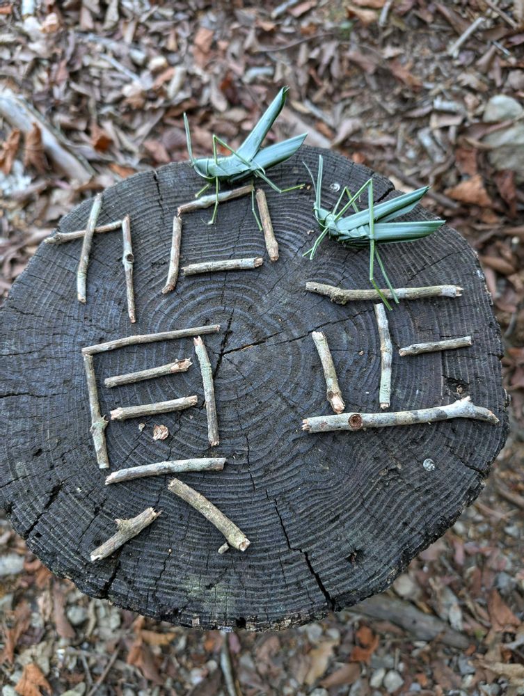 枝で賀正を描いた人とバッタを置いた人は別人らしいですが、皆さん多才ですね🥰🤩