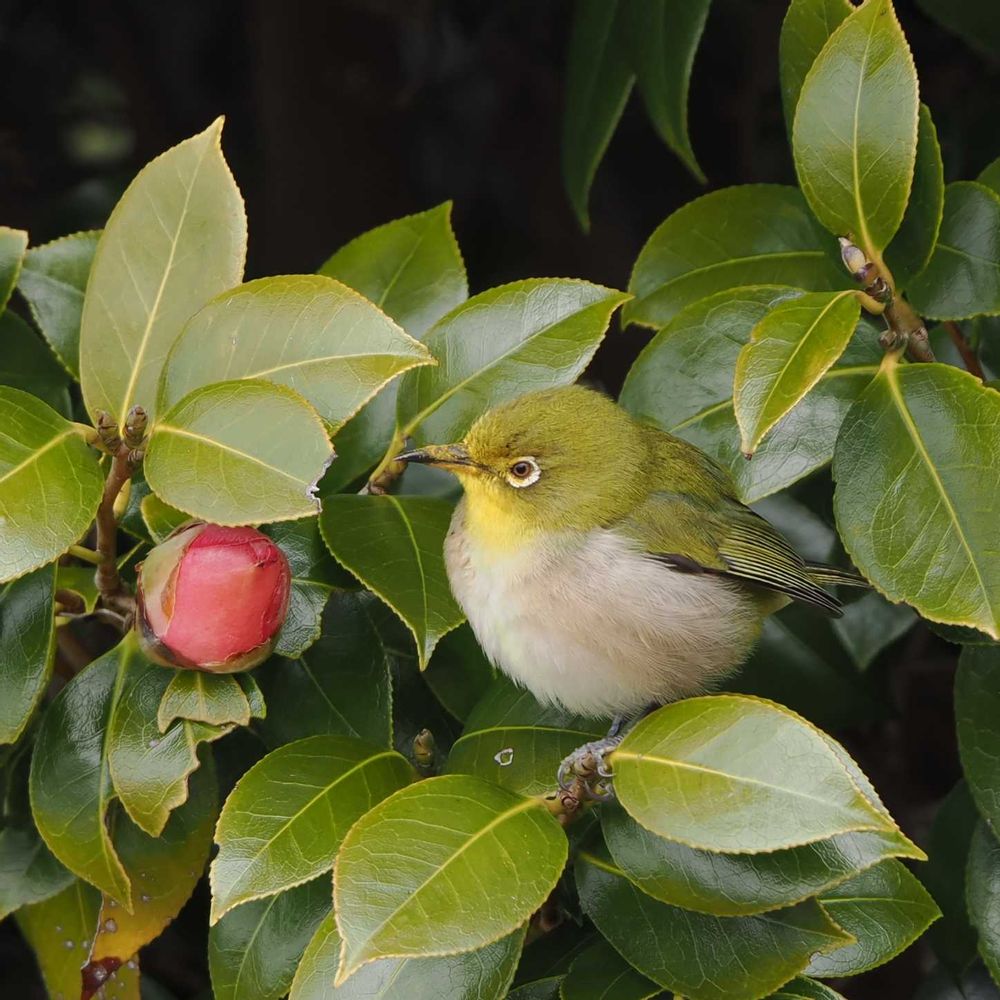 ①のツバキの赤い蕾とメジロちゃんがメチャ可愛いくて😍
