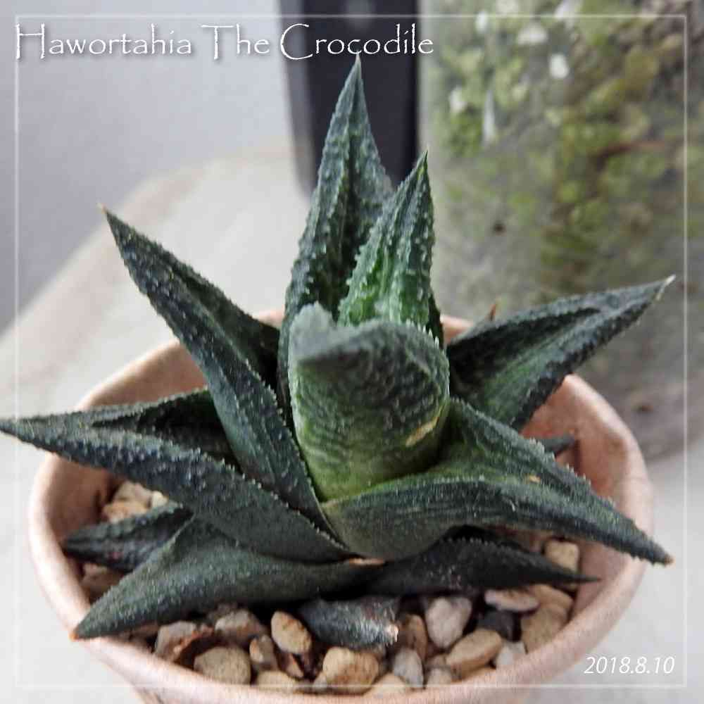ハオルチア、クロコダイル。日に当てると黒くなるけど、コモドドラゴンと違って日陰に置くと緑に。これくらいの色合いの方覯調子が良さそうなので、やや日陰眼が定位置になりつつあります。