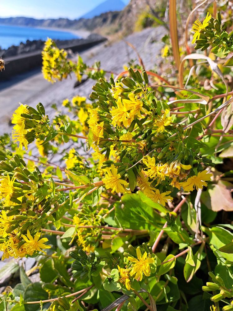 葉がツルツルで光沢があります。オニタビラコの仲間の中ではかなり大きくてこのワダンは花茎も長かったです。