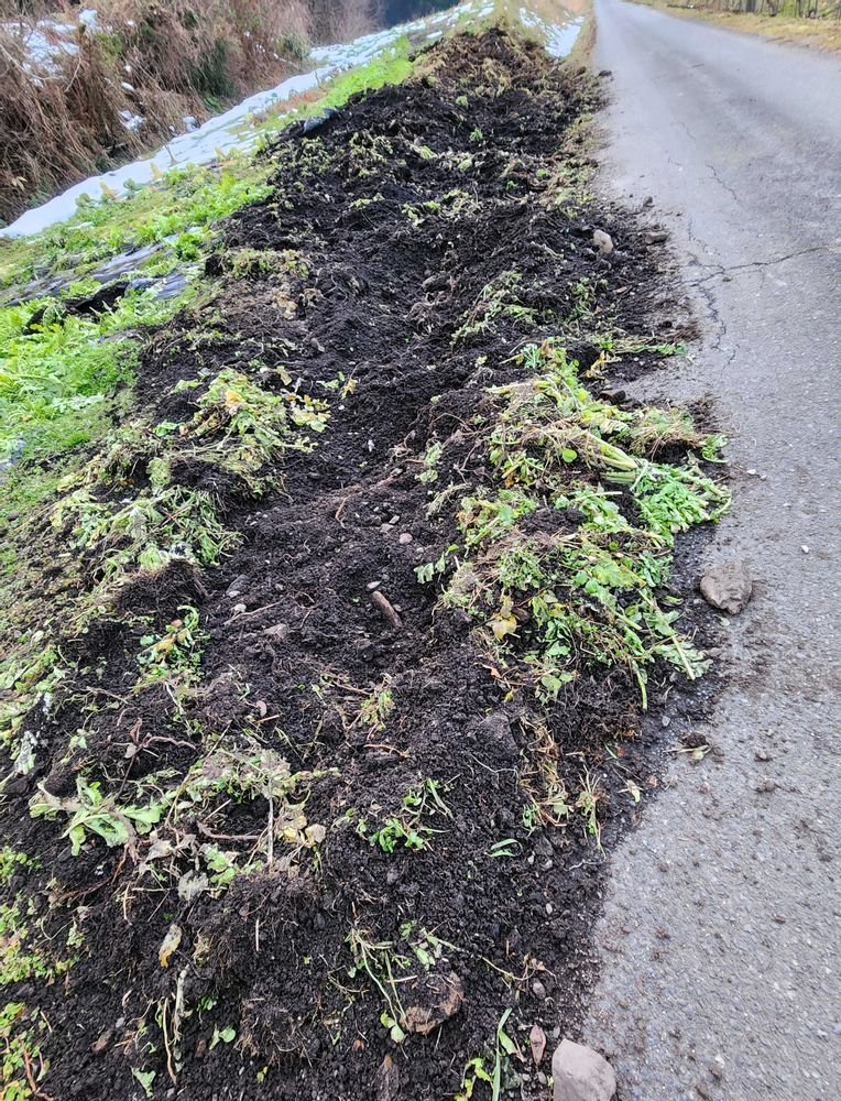 ご近所を散歩中のこと🚶♀️写真は道を挟んだ両側が掘り起こされていて周りにはもっと酷い所も広範囲に被害にあっていましたイノシシ🐗の仕業に違いないです😱