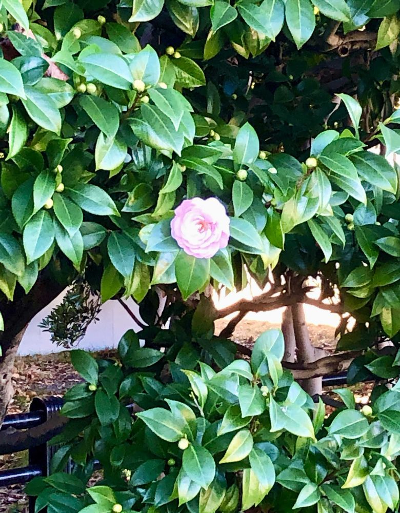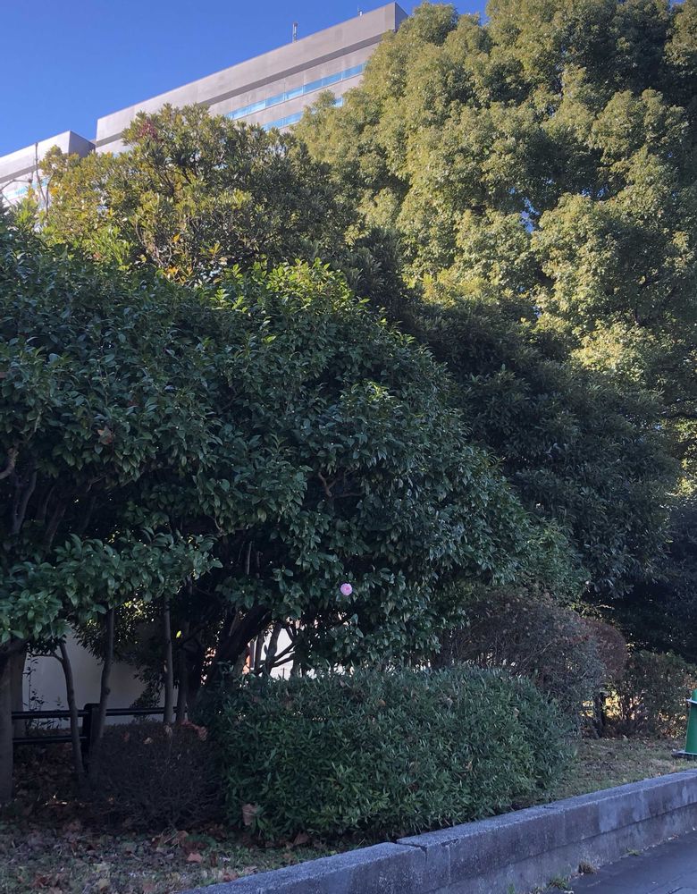 日比谷公園を出て皇居に向かう途中で、薄ピンク色の「乙女ツバキ」をパチリ!📸🌸🌿😊🌞👌
