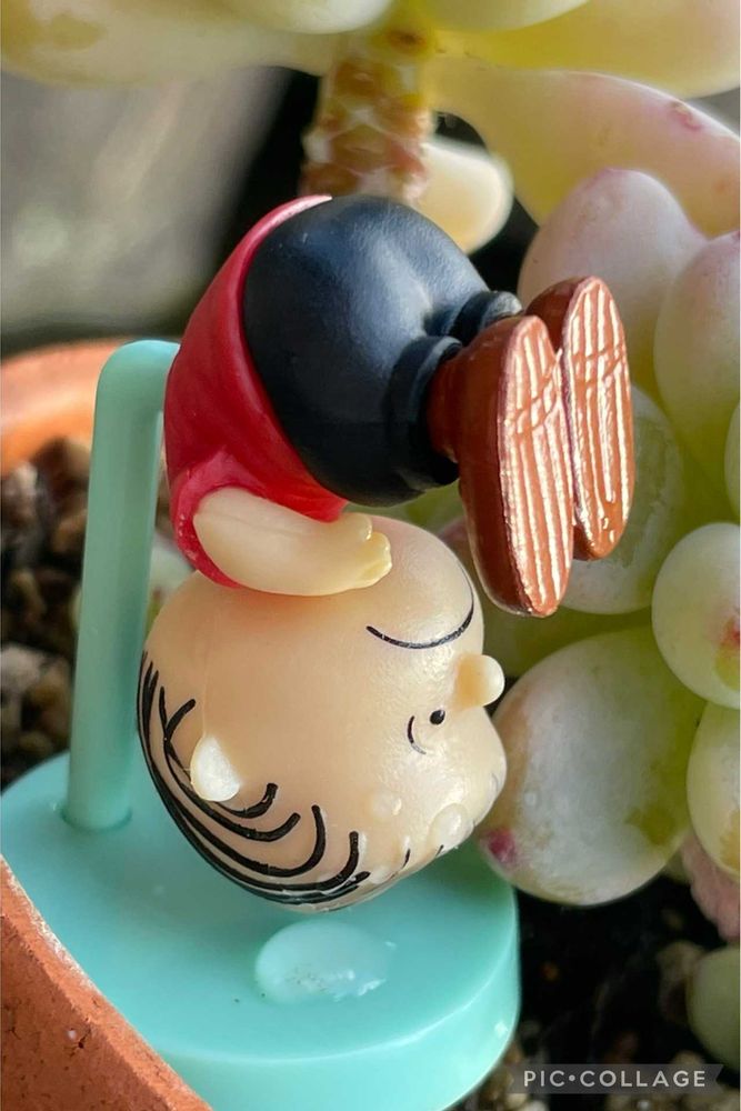 スーパーでスヌーピー編のチョコエッグを買いました。どんなスヌーピーが出てくるだろうと思っていたら、チャーアリーブラウンの逆立ち?が当たりました。スヌーピーではありませんでした💦これって、何を表わしているのでしょう?