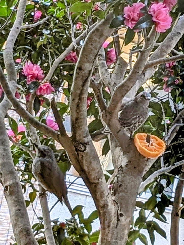 みかんを🍊木に付けておくと、鳥さんが食べに来るの?