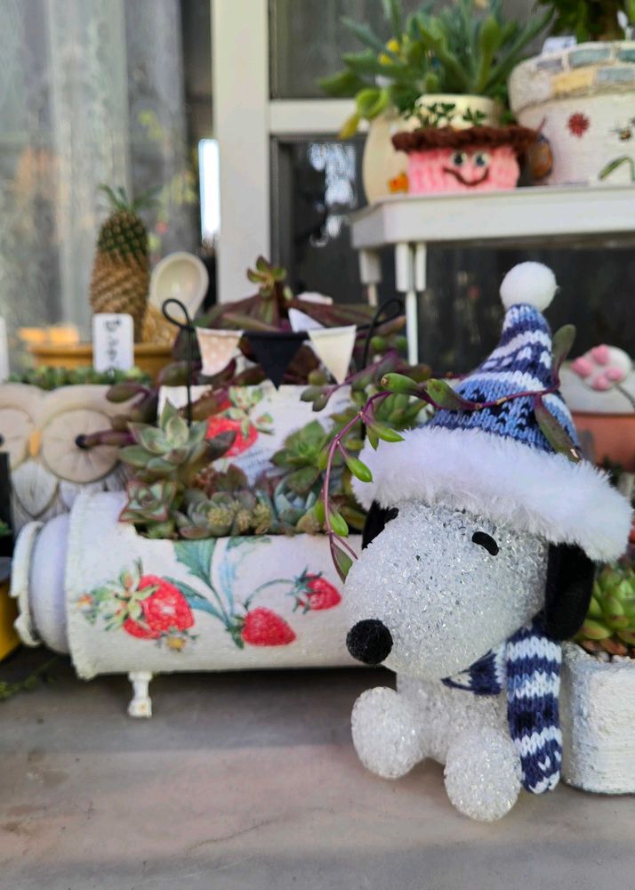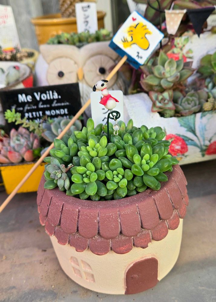 名探偵みゆちゃんのお家鉢にマイメロちゃん作のピックとスヌーピーちゃん