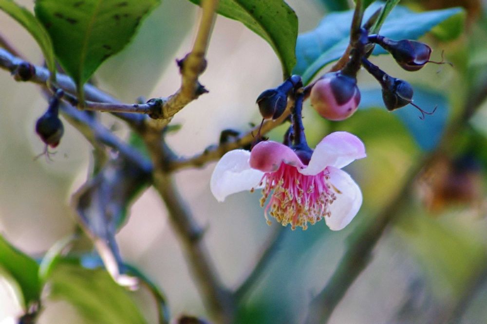 チャノキの雄しべは花糸も葯も黄色ですが、コチラ 紅花チャノキは 花糸がピンクなんです。