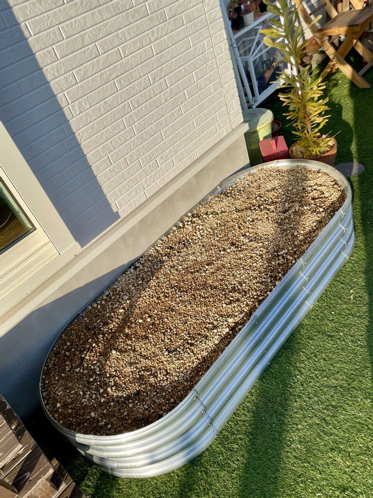 1時間くらい土木工事を頑張ってドライ用のレイズドベッドを作りました。ひたすらスコップで混ぜてたので明日は腰痛になりそう。ジュラルミンっぽくて思ったよりかっこいい感じ、春になったらいろいろ植えよう🎵