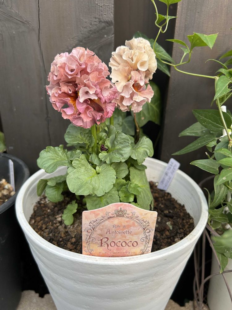 パンビオは例年そこまで熱心に育てているわけではありませんが、昨年に続きローブドゥアントワネットをお迎えしました。今年はロココ。お一人様にしようと思いましたが、一応ムスカリの少し変わった子も一緒に植えました。