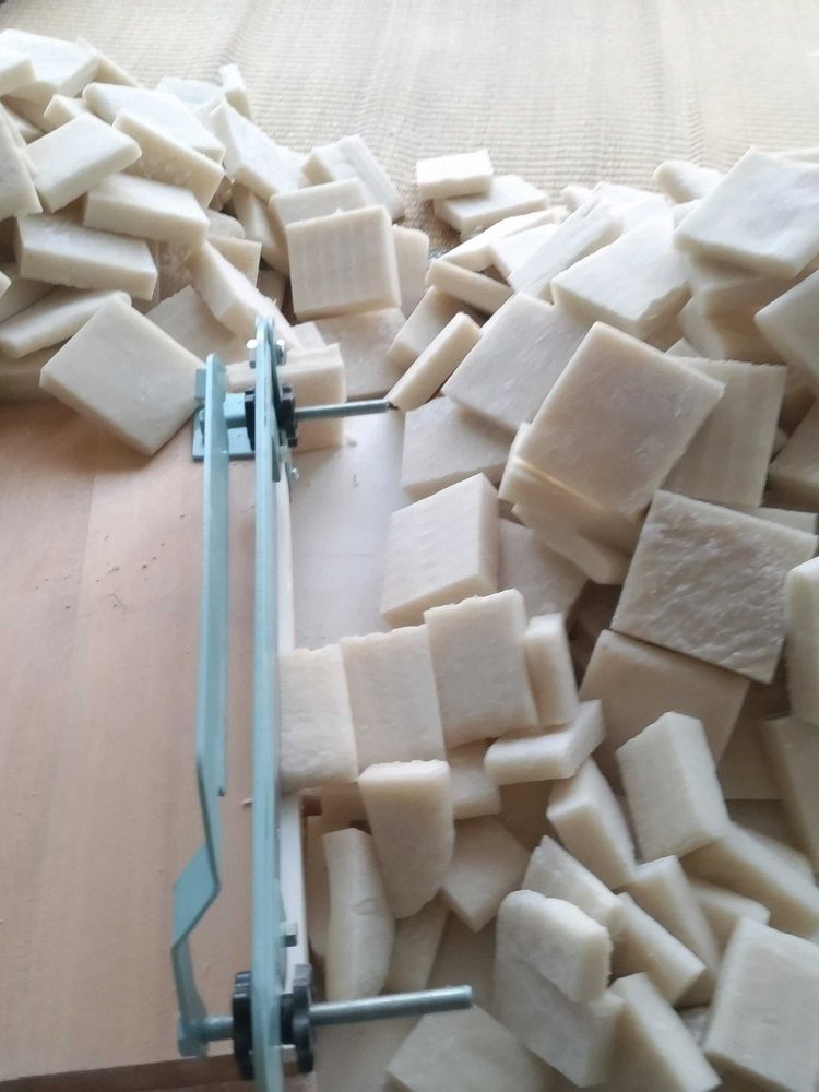 以前は包丁で切っていましたが、手が痛くなり、これで切ると早くてありがたい。約28キロの持ち切り🤗