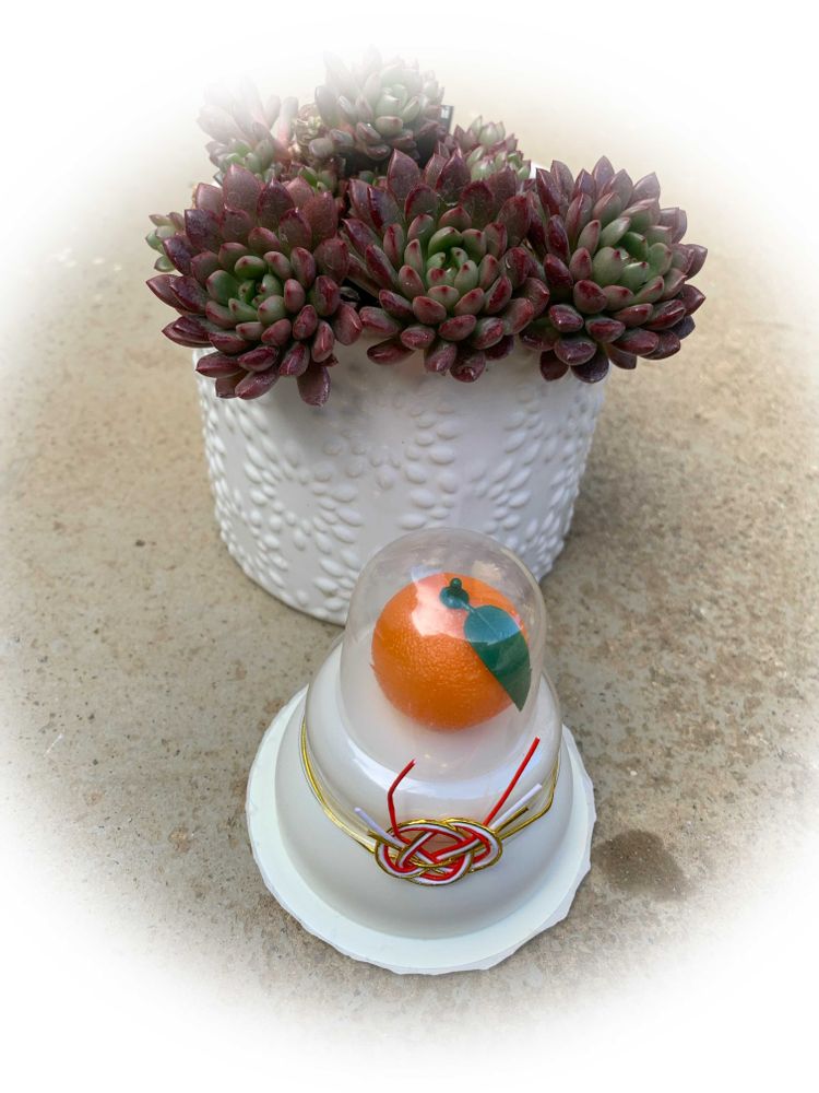 ④我家の外用の鏡餅ととても増えたダイソー(100均)のピンクルルビー・鉢も鏡餅もダイソー