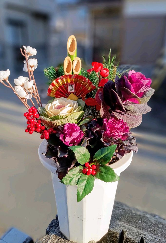 昨年の暮れに値引きになっていた葉牡丹をお正月バージョンにアレンジしてみました😊