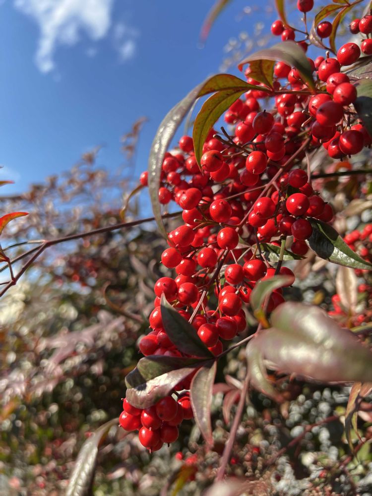 青空にナンテン日本のお正月平和で穏やかで良いですよね(外国は知りません😅)