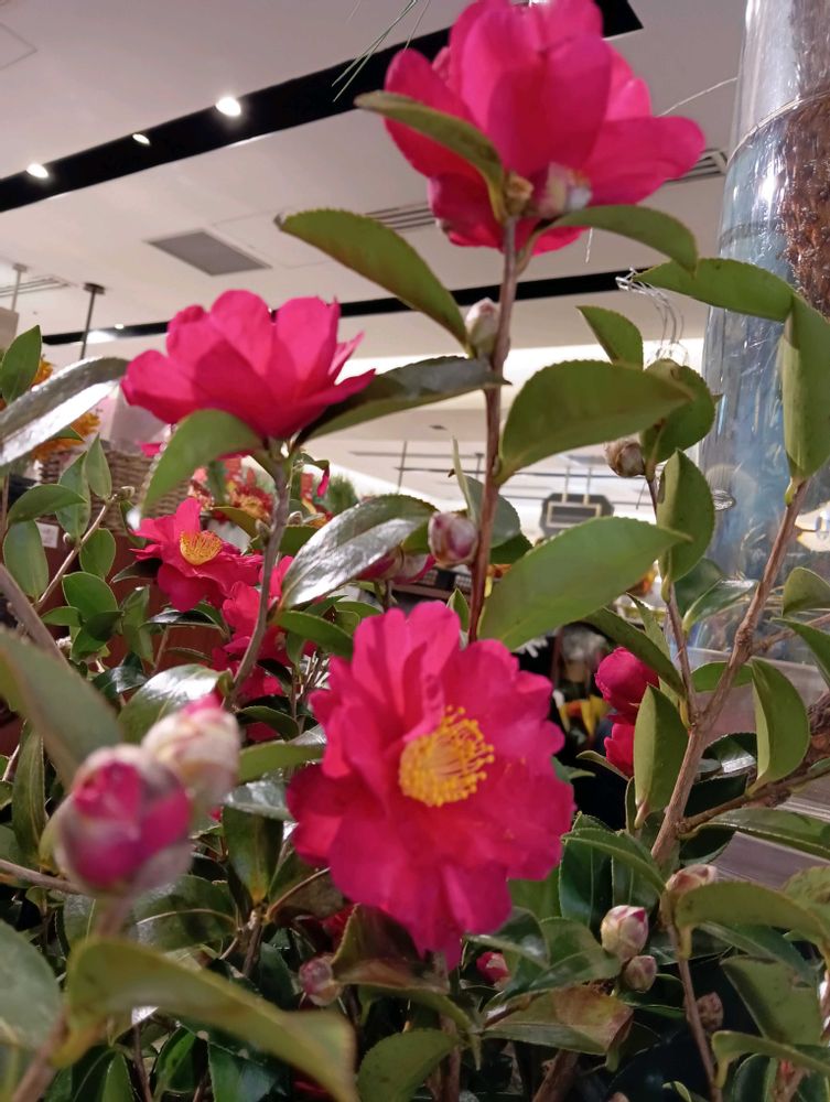 品川駅構内の花屋さん、ヒヤシンスを買って、福島へ、旅行気分で戻ります、明日から仕事で〜す😁花屋さんのツバキ🩷