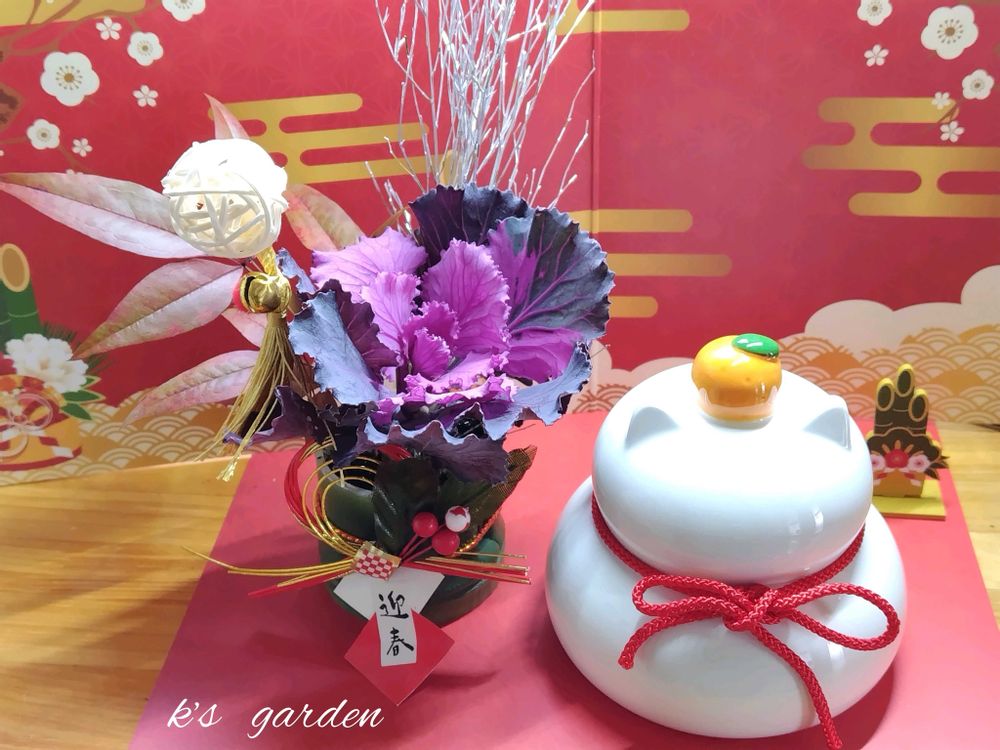 鏡餅と葉牡丹のお飾りが可愛い🩷