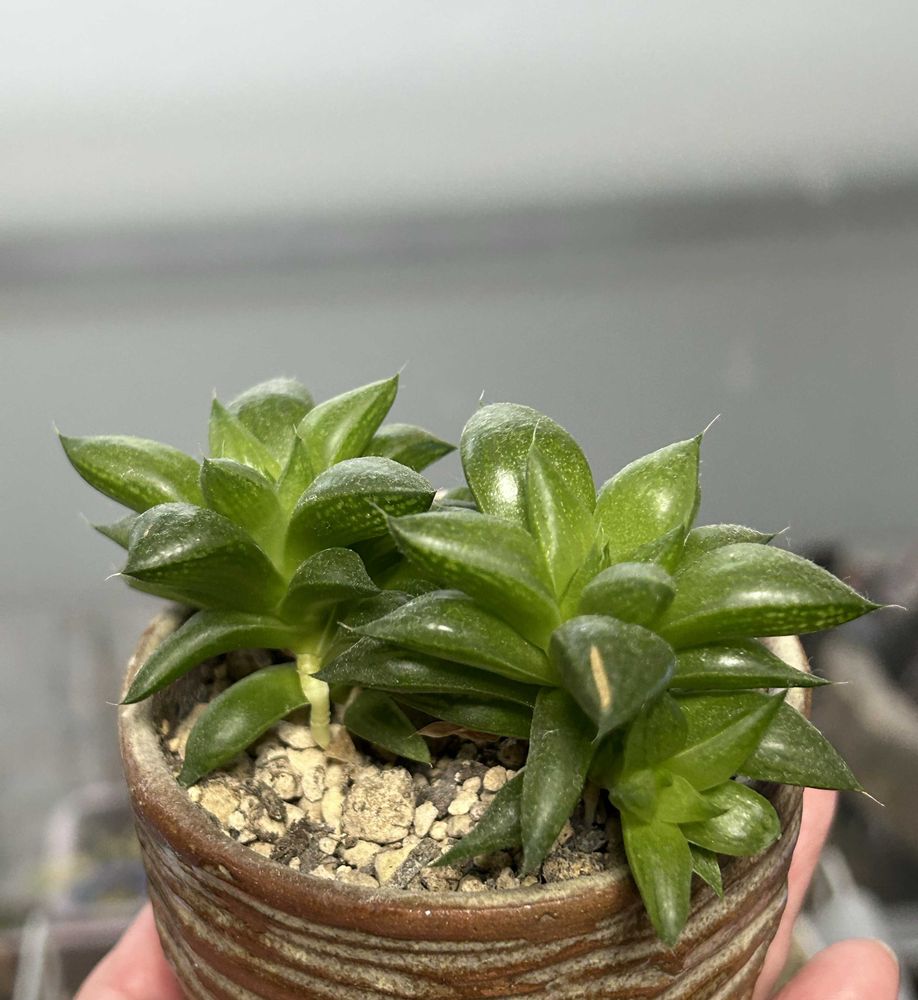 朝日が当たり水やりきつめでも徒長かなと思いきや娘ん家の親株も同じような感じ群生してました。うちもいつかは〜