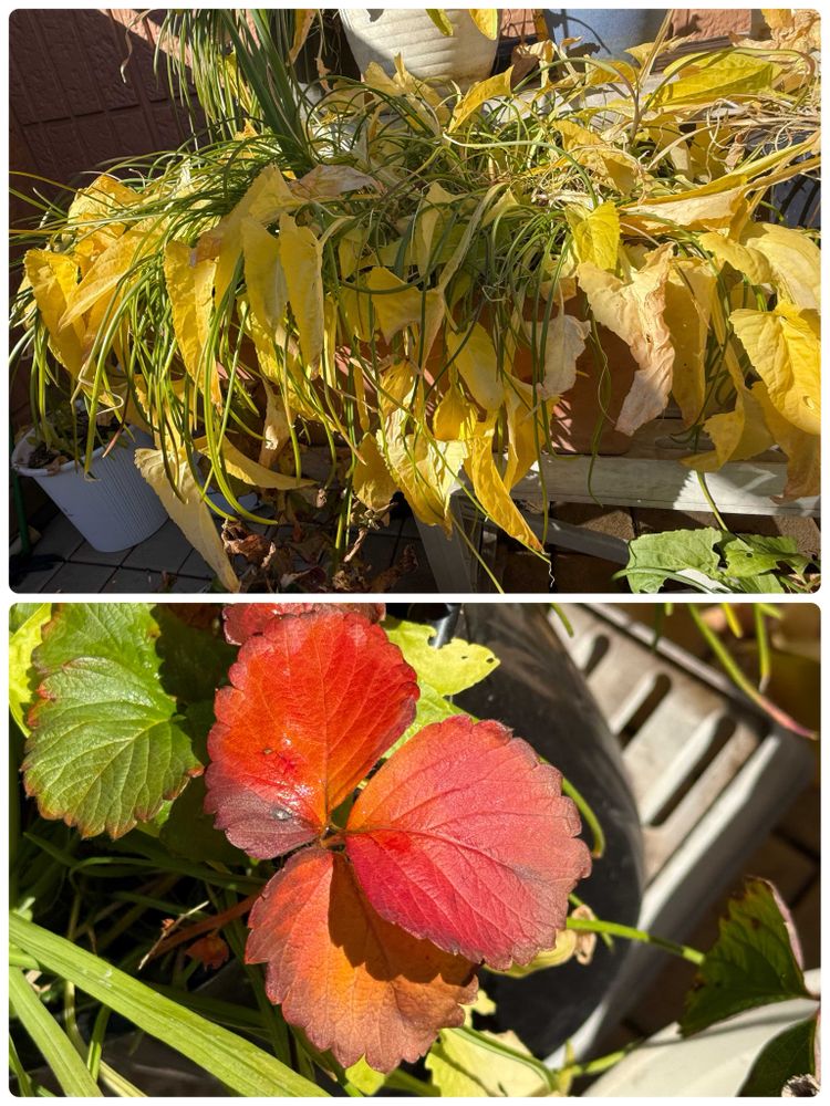 イチゴの葉の紅葉