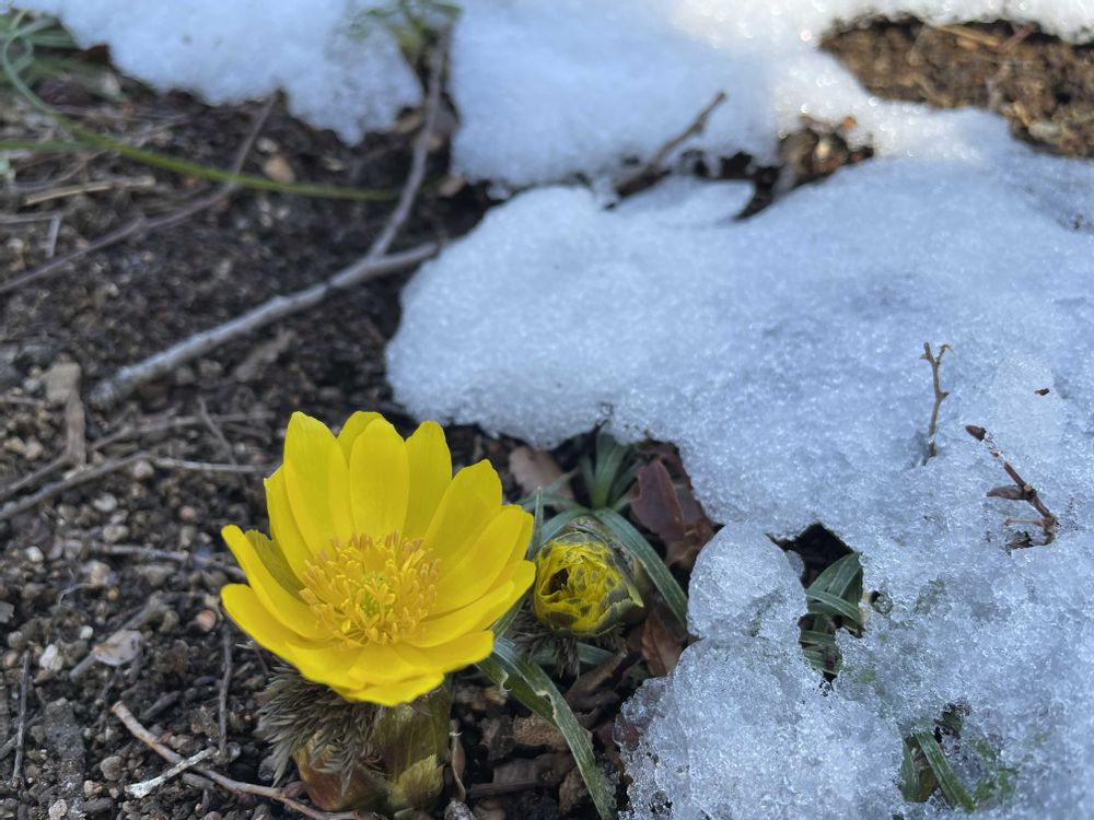 ②雪解けの頃に撮ったフクジュソウも植物園にて