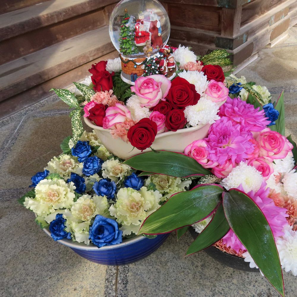 ゆーちゃんさんのバラ,葉ボタン,花手水の投稿画像