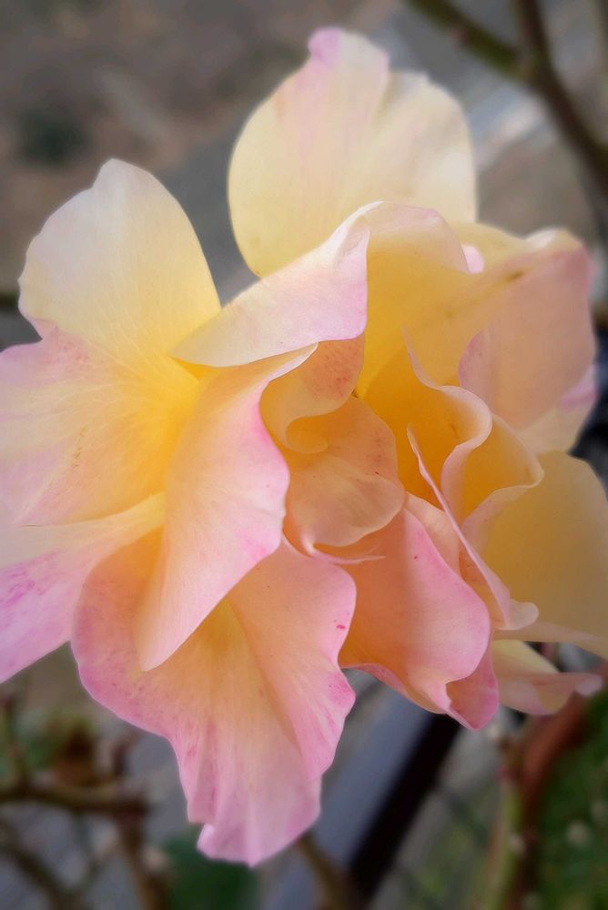淡いピンク🩷&イエロー🧡のコラボレーションで咲いてくれたモーリス・ユトリロさん🌹🌹🌹寒い中ありがとうね😅こんな淡いカラーは初めてです✨素敵よ🫰✨️