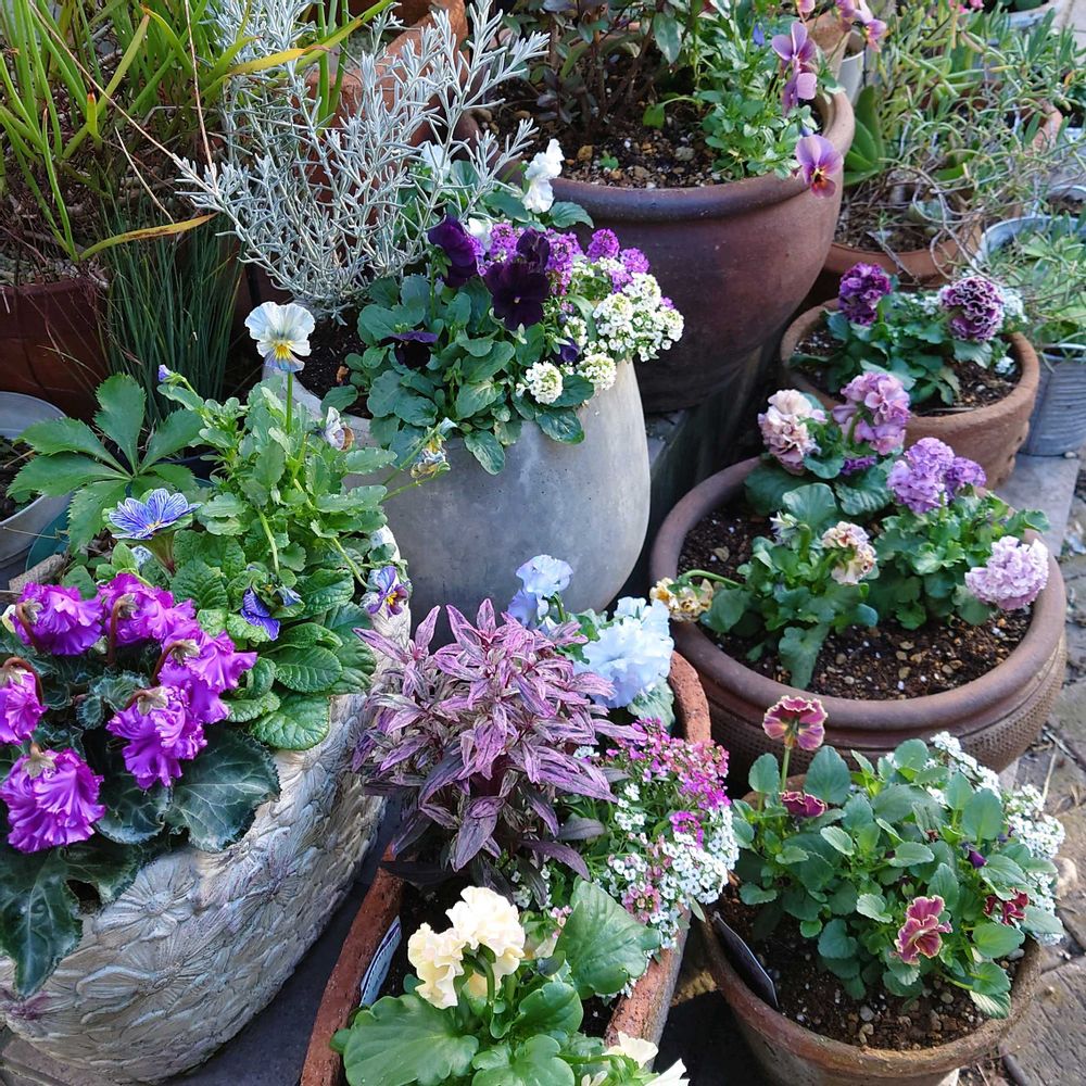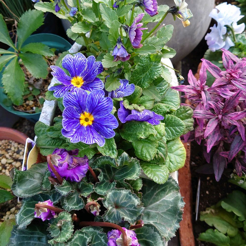 寄せ植えで春を待ちながら咲く花たち〜プリムラゼブラも寒くても元気💜✨