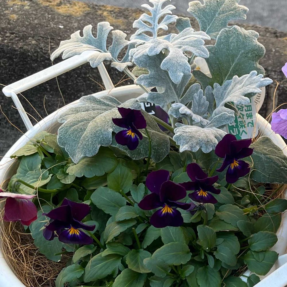 ⬅️きらめくビオラ ももかクジラ、ビオラ、シロタエギクの寄せ植え🌸