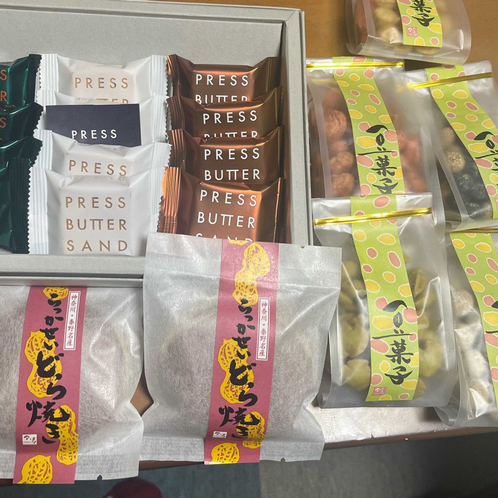 5️⃣昨日帰ってしまった息子が持って来てくれたお菓子🍪🫘大好きなバターサンドとお豆🥰💕