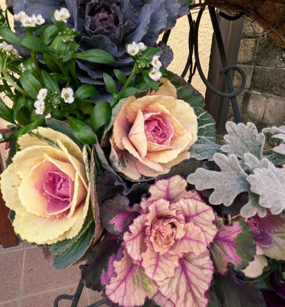 2枚目以降は、材料を揃えて作ったお飾り、葉牡丹🌿