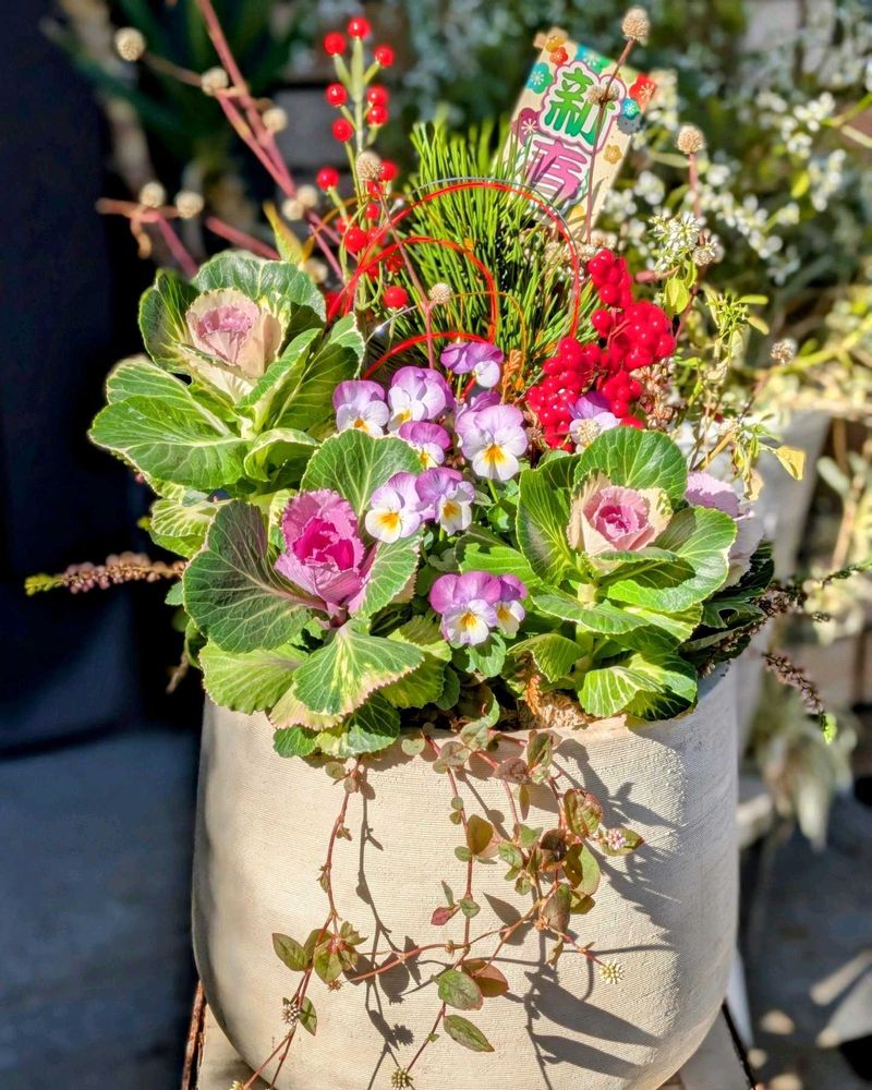 素敵な〜葉牡丹との寄せ植え💐ですね💓