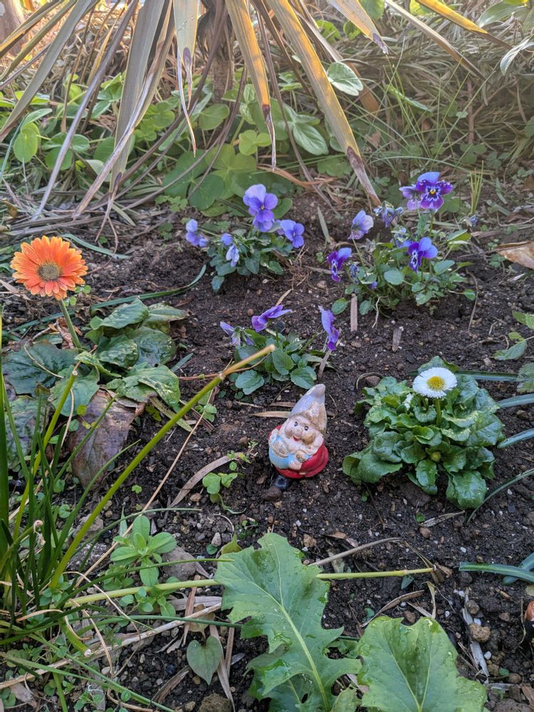 私が。ビオラ植えた近くに、息子が誰からもらったのかは?だけど、植えてみる、了解😄仲良し家族になりました。👍デイジーが仲間入りです。