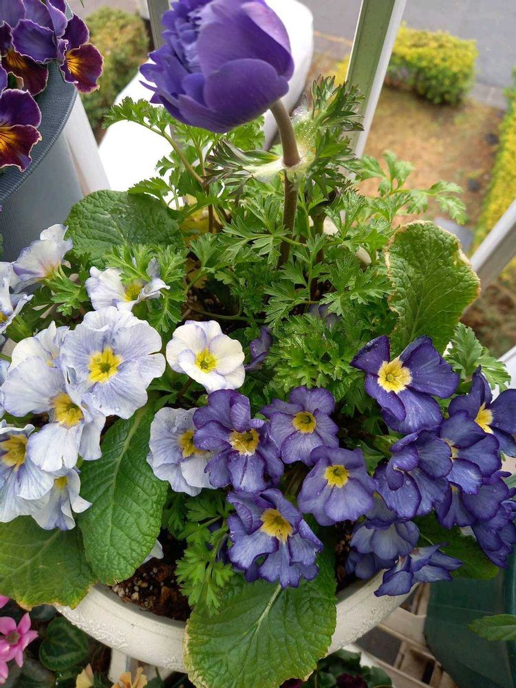 🩵💙💜プリムラジュリアン ゼブラ…アネモネポルトと寄せ植え