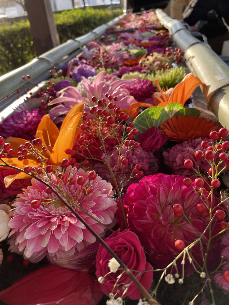 ①花手水が鮮やか🌸🌼