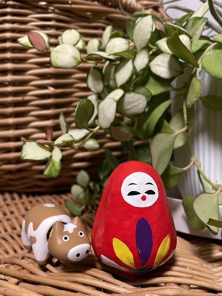 ③藤崎宮のダルマみくじとガチャのべこ🐂。中吉でした😊