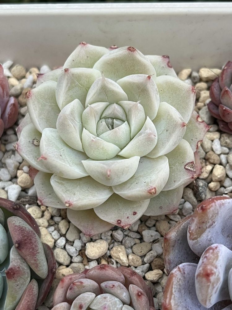 まわりの多肉さんが赤くなっていく季節に なんか目立つきれいな白いカラー ♡