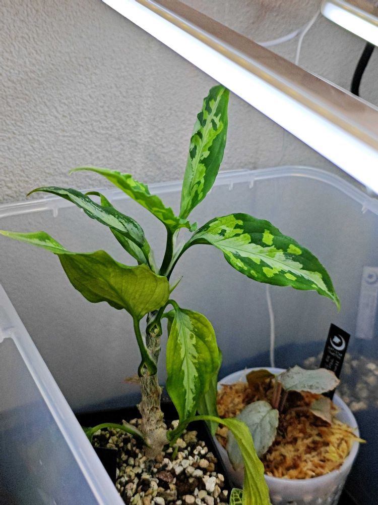 アグラオネマの葉模様、迷彩柄で良き良き。