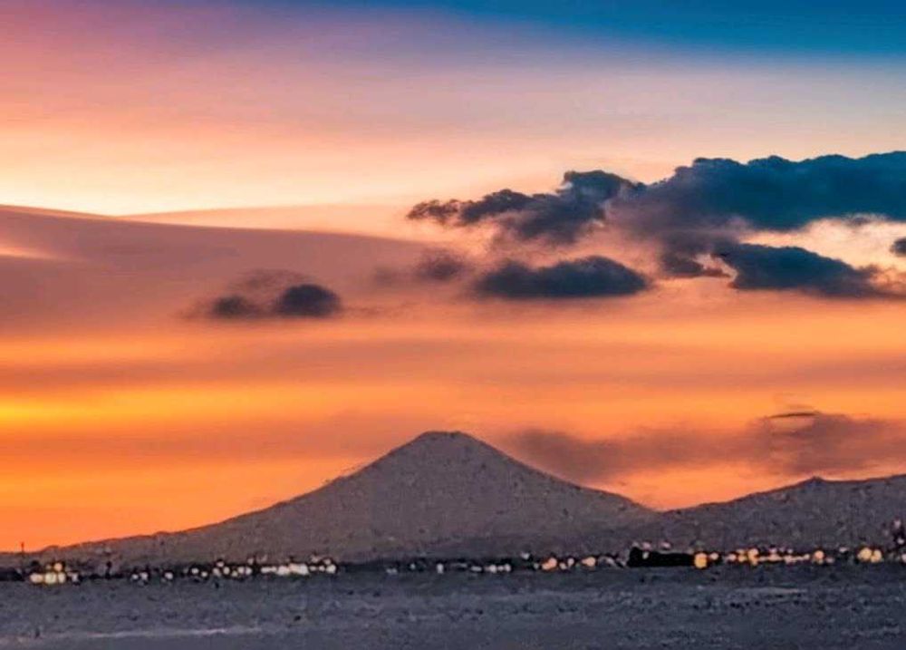 ドライブ帰りに夕焼け空に富士山がくっきりと映っていました