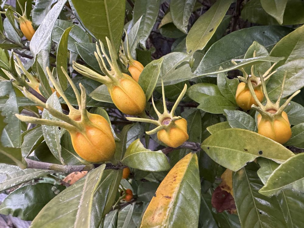 いつもの川の遊歩道にクチナシがたくさん咲いてくれるのに、未だに実を見た事が無かったんですが、種類が違ったんですね〜😅